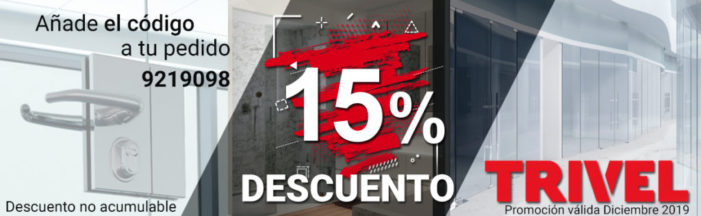 Para acabar, nos complace anunciarte que durante el mes de Diciembre ponemos a tu disposición, un 15% de descuento en todos los productos Trivel: Pernios, bisagras, cerraduras, bombines, cierrapuertas, tiradores, marquesinas… Encontrarás una amplia variedad de herrajes de la marca Trivel en nuestro catálogo de instalaciones para el vidrio G2 o en el catálogo general.