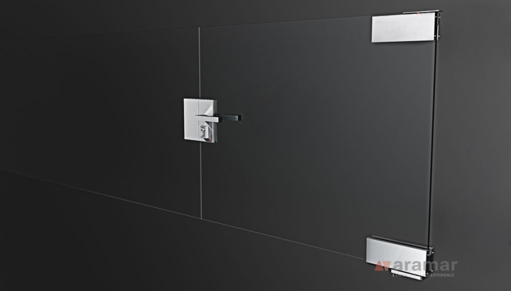 En Aramar Suministros para el Vidrio ofrecemos una amplia variedad de pernios con o sin freno, para cualquier puerta batiente de vidrio.
