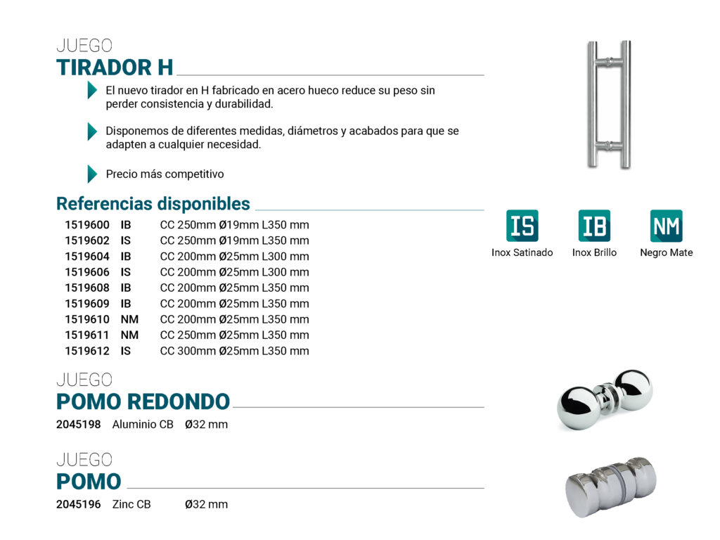 Este nuevo tirador en H fabricado en acero, reduce su peso sin perder su durabilidad.