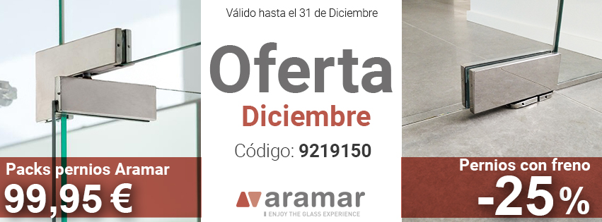 Este mes en Aramar Suministros para el Vidrio, traemos una oferta en pernios con freno para todos los profesionales del sector, ampliando las posibilidades de ofrecer a sus clientes proyectos con elementos y materiales de auténtica calidad.
