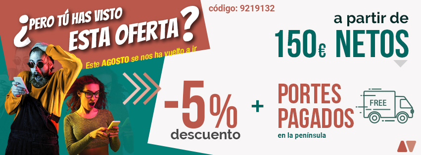 Así es, podrás beneficiarte de un 5% de descuento en cualquiera de los productos, teniendo el transporte totalmente gratis siempre que hablemos de encargos dentro de la península con importes superiores a 150€ netos aplicando el código promocional: 9219132.