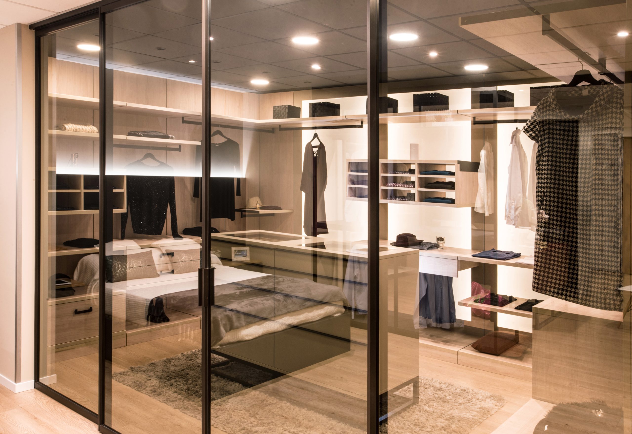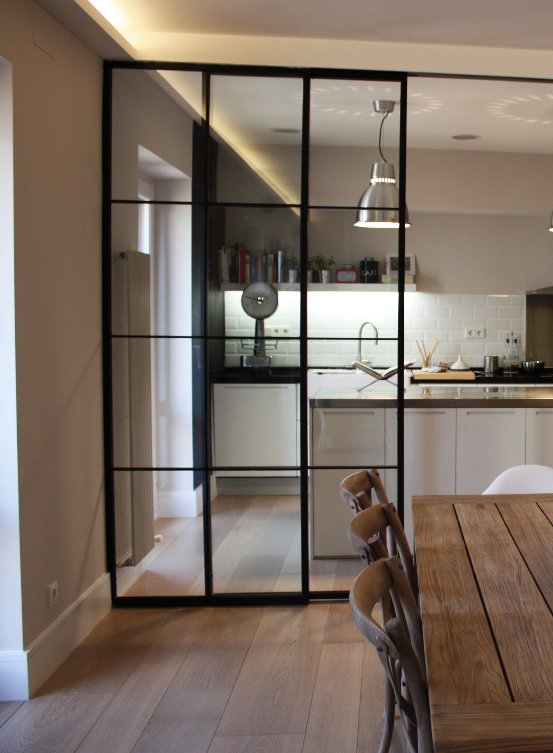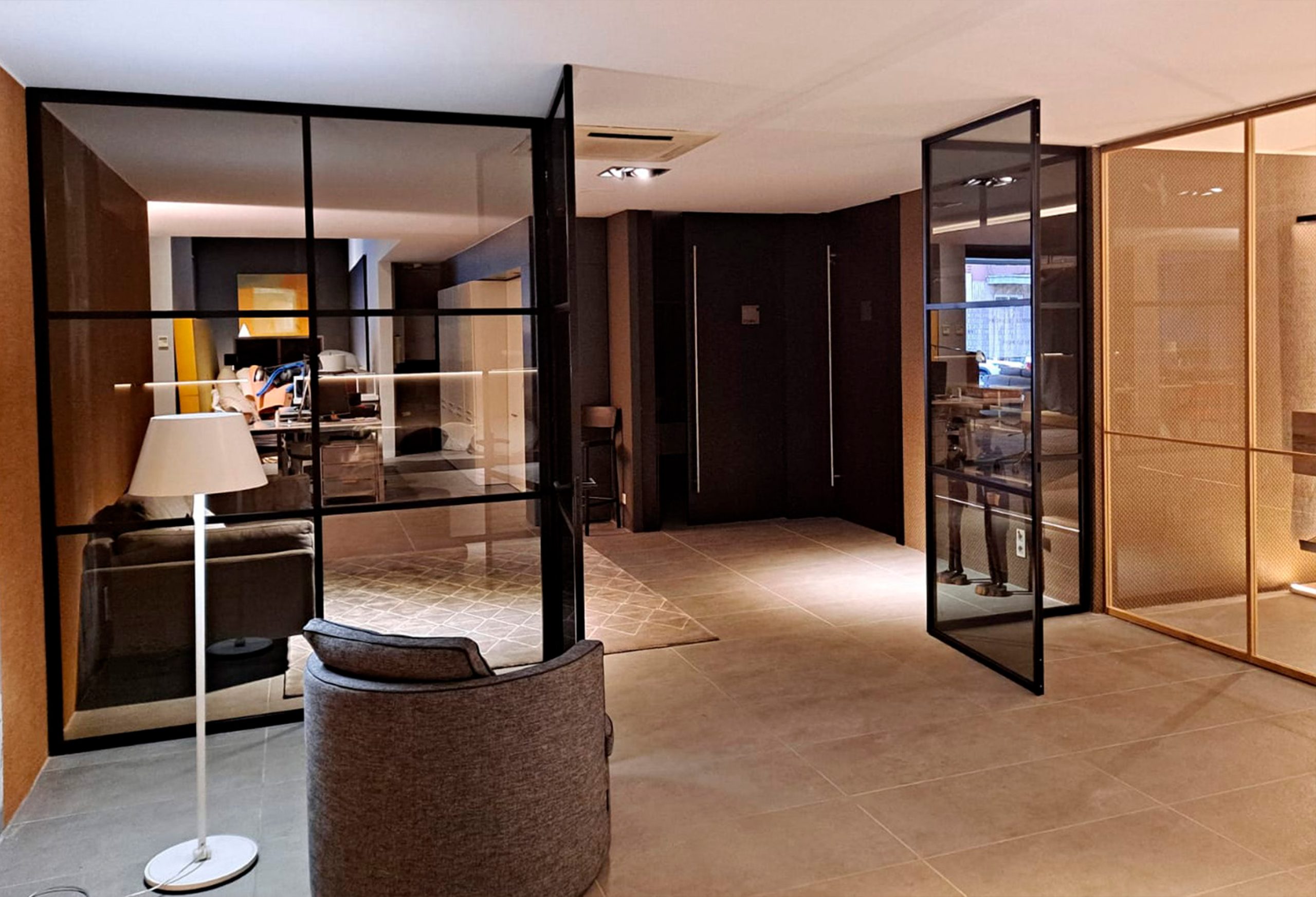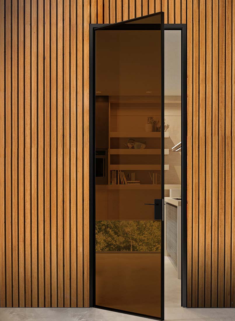 Skel es un sistema de puertas de vidrio con marco negro que redefine la manera de separar espacios. Su estética industrial, de líneas finas y precisas, aporta carácter y sofisticación sin renunciar a la ligereza visual.